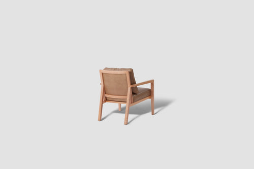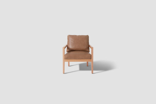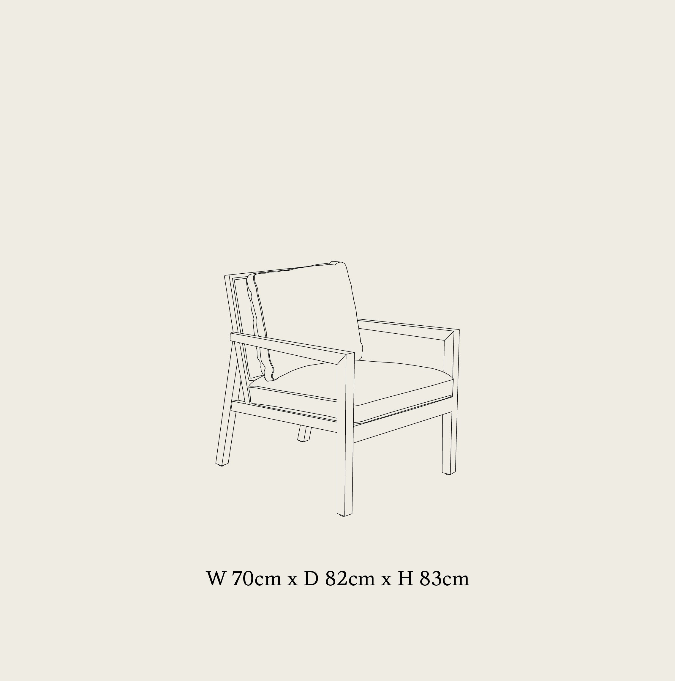 Parr’s open timber frame and leather-cushioned seat deliver understated luxury. Its versatile design works beautifully as a statement piece or part of a curated seating arrangement of two to four pieces.