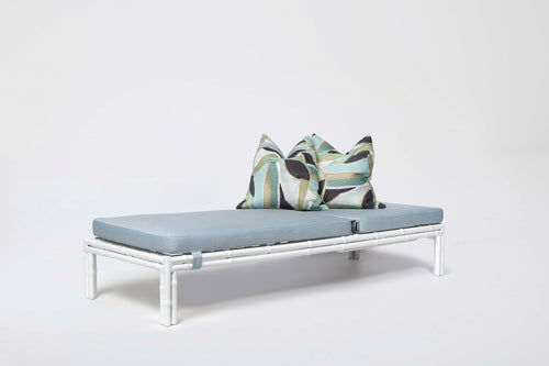 Stocked in signature outdoor fabrics: Seafoam & Navy