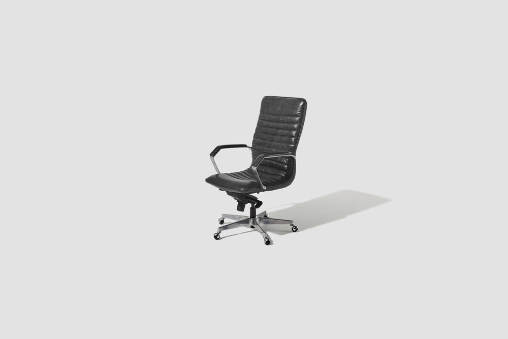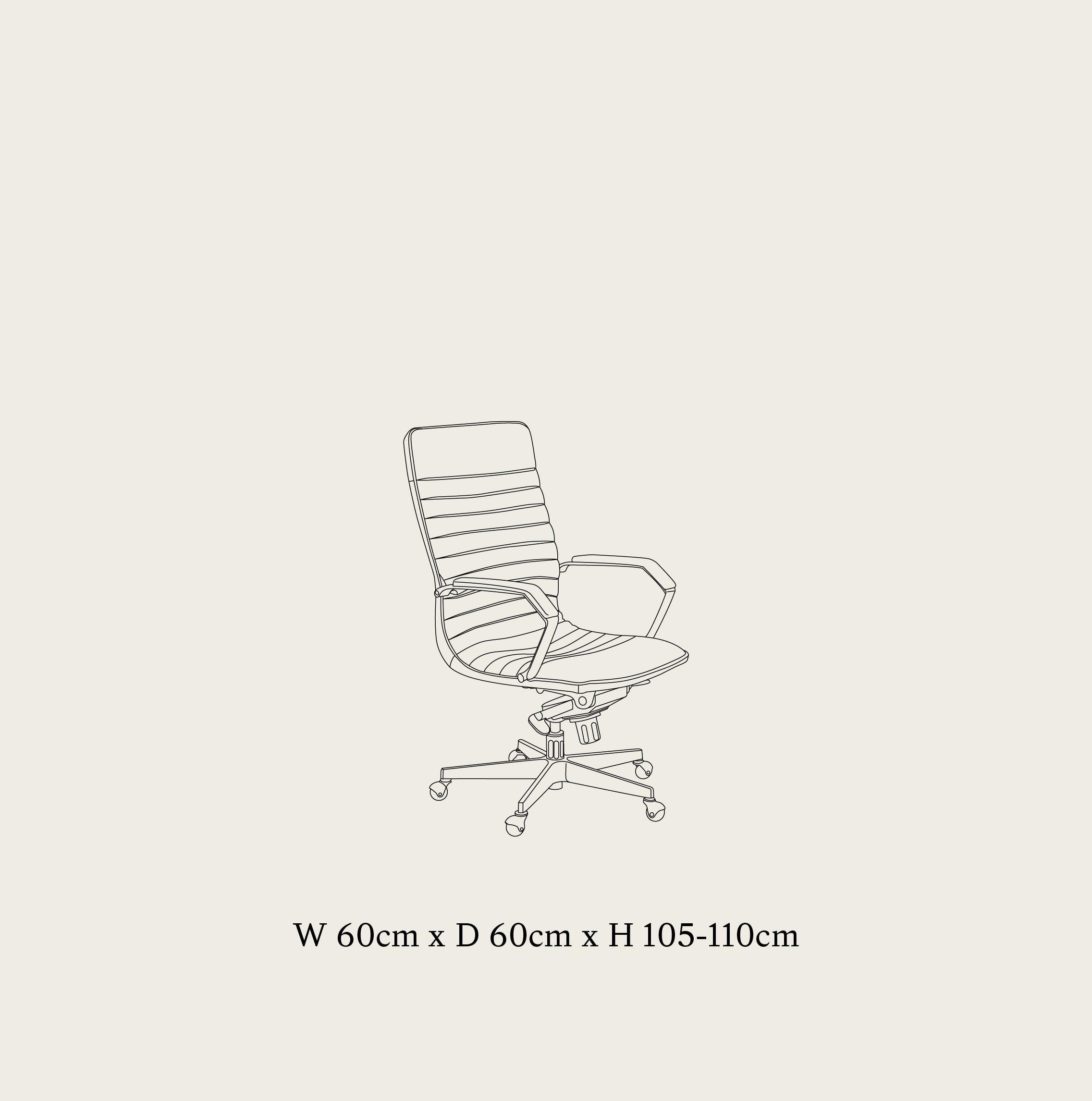 Manning brings sophistication to the home office with its sleek high back and refined upholstery. Finished in Isadora Ocean aniline leather, it ensures both comfort and elegance during the workday.