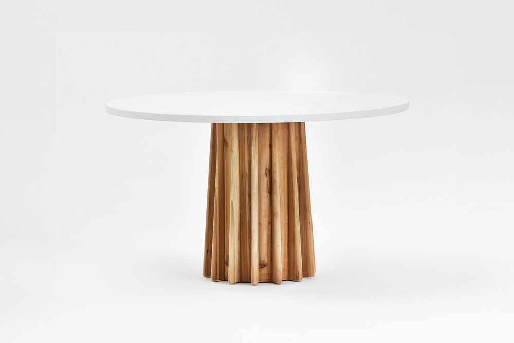 Top crafted from solid birch, finished in Stoneplex. Secured on a reclaimed European pine base.