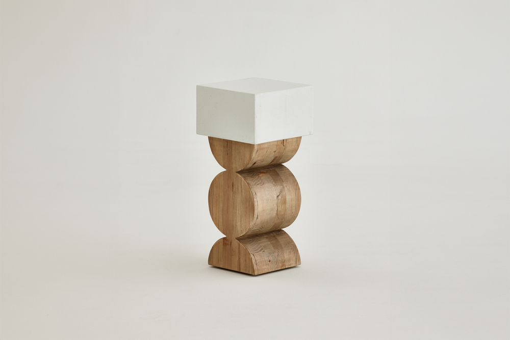Top crafted from solid birch, with a Stoneplex finish. Secured on a reclaimed European pine base.