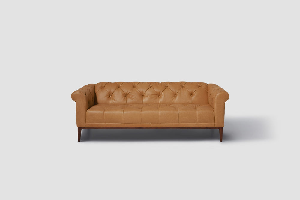 Harrow reimagines the traditional Chesterfield with modern lines and proportions. Deep button tufting adds depth, while its raised timber frame and tapered feet create a sense of lightness, perfectly balancing heritage and contemporary design.