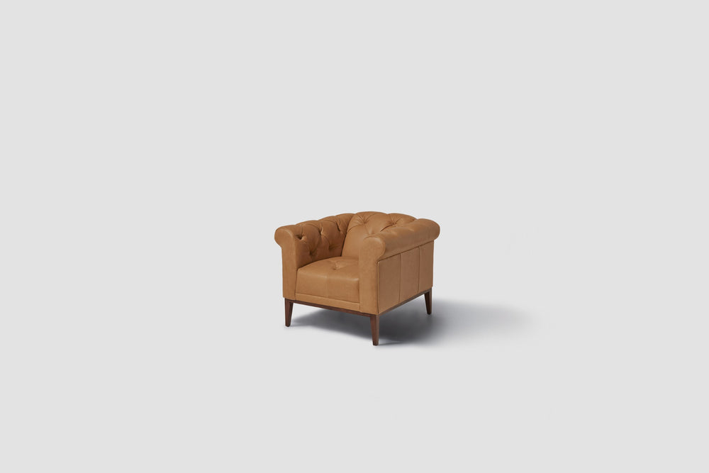 Harrow reimagines the traditional Chesterfield with modern lines and proportions. Deep button tufting adds depth, while its raised timber frame and tapered feet create a sense of lightness, perfectly balancing heritage and contemporary design.