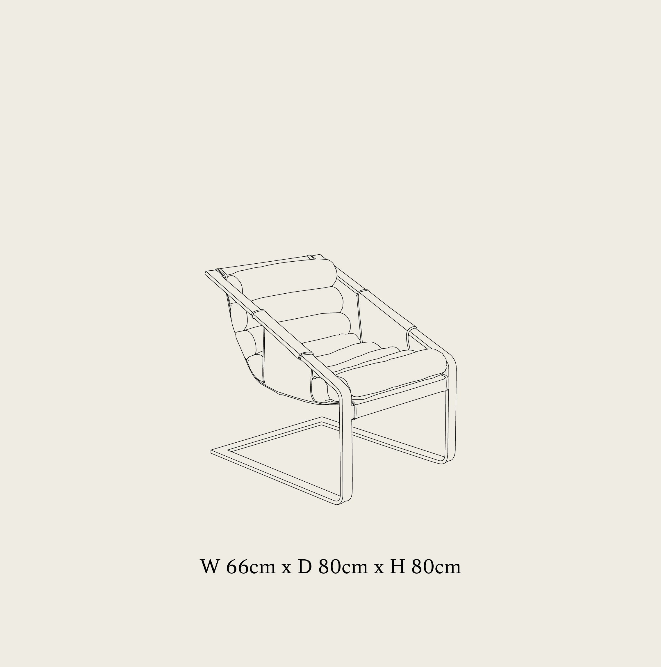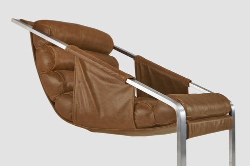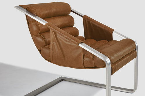 Royce combines a brushed stainless steel cantilever frame with a channeled cushion for a modern aesthetic. A luxurious chair, this aniline leather sling cushion chair brings an eye-catching sense of style.
